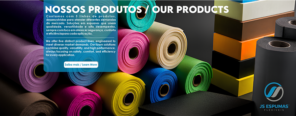 A leader in technical foams, JS Espumas combines nearly two decades of experience with high-tech processes. We deliver proven performance and superior quality through 5 specialized product lines. We guarantee safety, comfort, and efficiency tailored to your company's needs. Click to explore our complete product line.